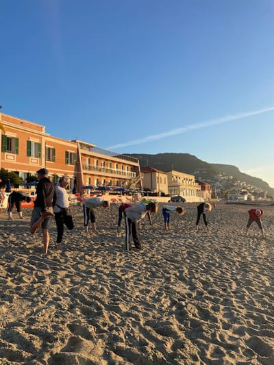 Täglich 2 Bewegungstraining, je nach Wetter direkt am Strand